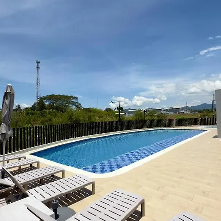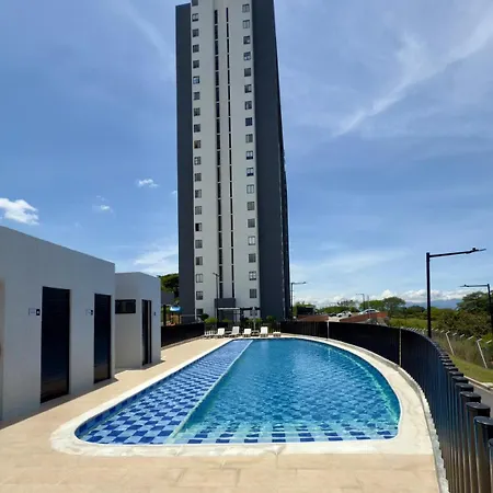 2 Min Ukumari Luxury Apartment In Cerritos Pereira的住客可用私人游泳池。该公寓离Replica de Pereira大约2.9公里。